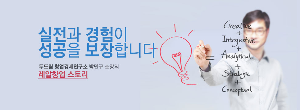 사업장주소 : (우 06777) 서울시 서초구 마방로 4길 15-56(양재동 253) 삼화빌딩 301호 Tel : 02-571-5355 | Fax : 02-571-3642 | email : isaknox5884@naver.com | 개인정보관리책임자: 박민구 copyright © 2014, 두드림창업경제연구소. All rights Reserved.